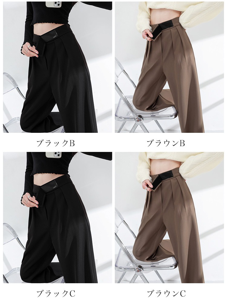 ウエスト部分が強調されたワイドパンツのディテール